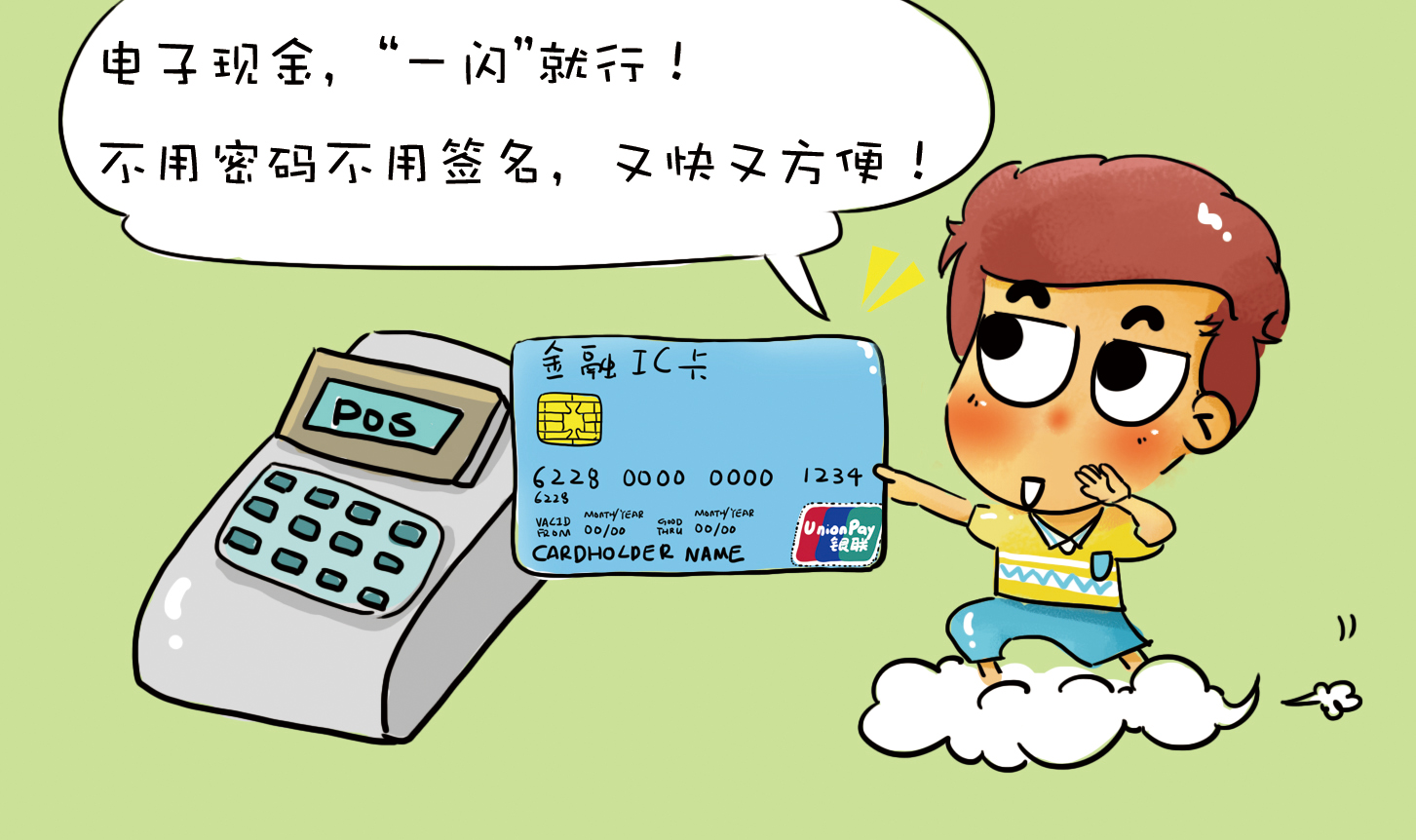 使用电子现金,在刷卡机上“一闪”就行了,又不用输密码又不用签名,又快又方便。