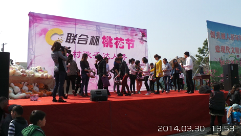 “春风又绿江南岸,桃花依旧展笑颜”。2014年3月30日,随着一年一度的桃花节开幕,由姚庄镇政府旅游开发公司主办,嘉善联合村镇银行姚庄支行承办的“联合杯桃花节乡村歌手达人秀”活动在姚庄北鹤村广场上火热开展。