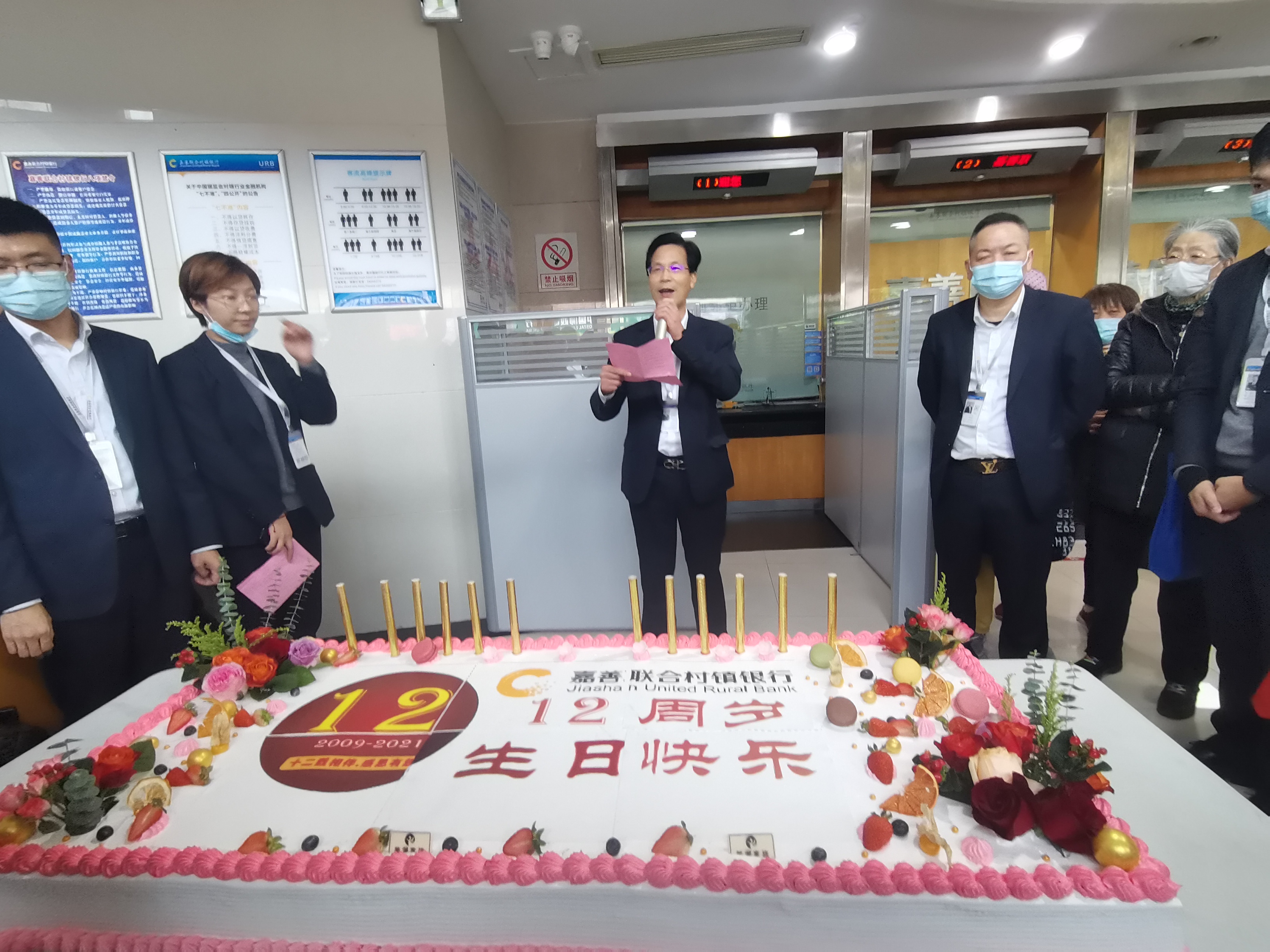 11月30日,嘉善联合村镇银行迎来了开业十二周年纪念日。当天,我行开展了丰富多样的行庆活动,邀请新老客户一起度过了愉快而难忘的“生日”!