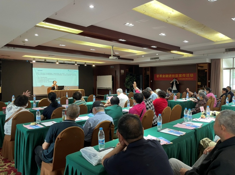 西湖区支行联合金沙港社区开展了“反诈宣传进社区,平安护航迎亚运”专项金融知识普及宣传讲座,针对辖内退休人员及老年客群进行反诈宣传,通过一个个身边的例子给在座人员敲响警钟,为现场居民讲解如何识别防范电信网络诈骗、上当后的补救措施、我行的防电信诈骗相关工作等,切实提升老年客群的防诈意识和防诈能力。现场还通过有奖问答的方式提升讲座参与感,现场气氛十分活跃。