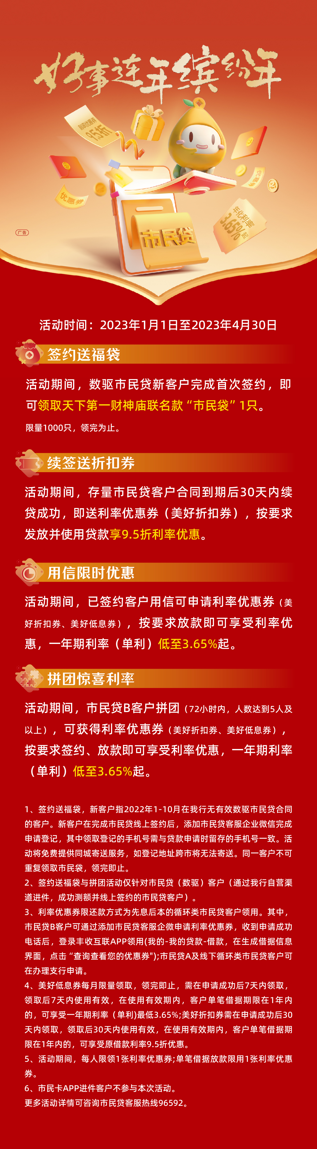 好事连年缤纷年——市民贷限时优惠利率低至3.65%起