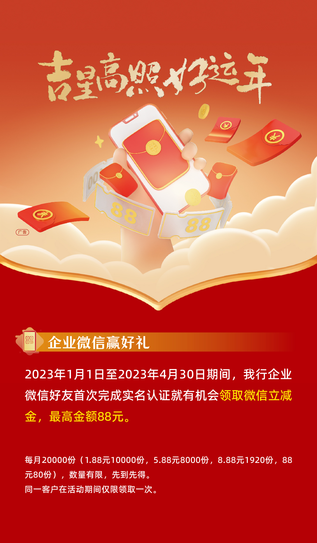 吉星高照好运年——添加企业微信好友最高赢取88元微信立减金