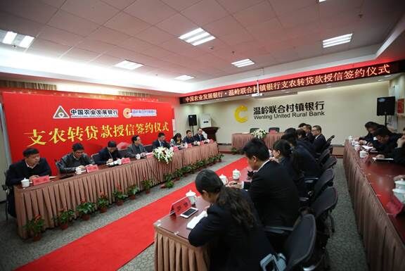 2016年11月24日下午3时,中国农业发展银行·温岭联合村镇银行支农转贷款授信签约仪式在我行总行大会议室隆重举行。